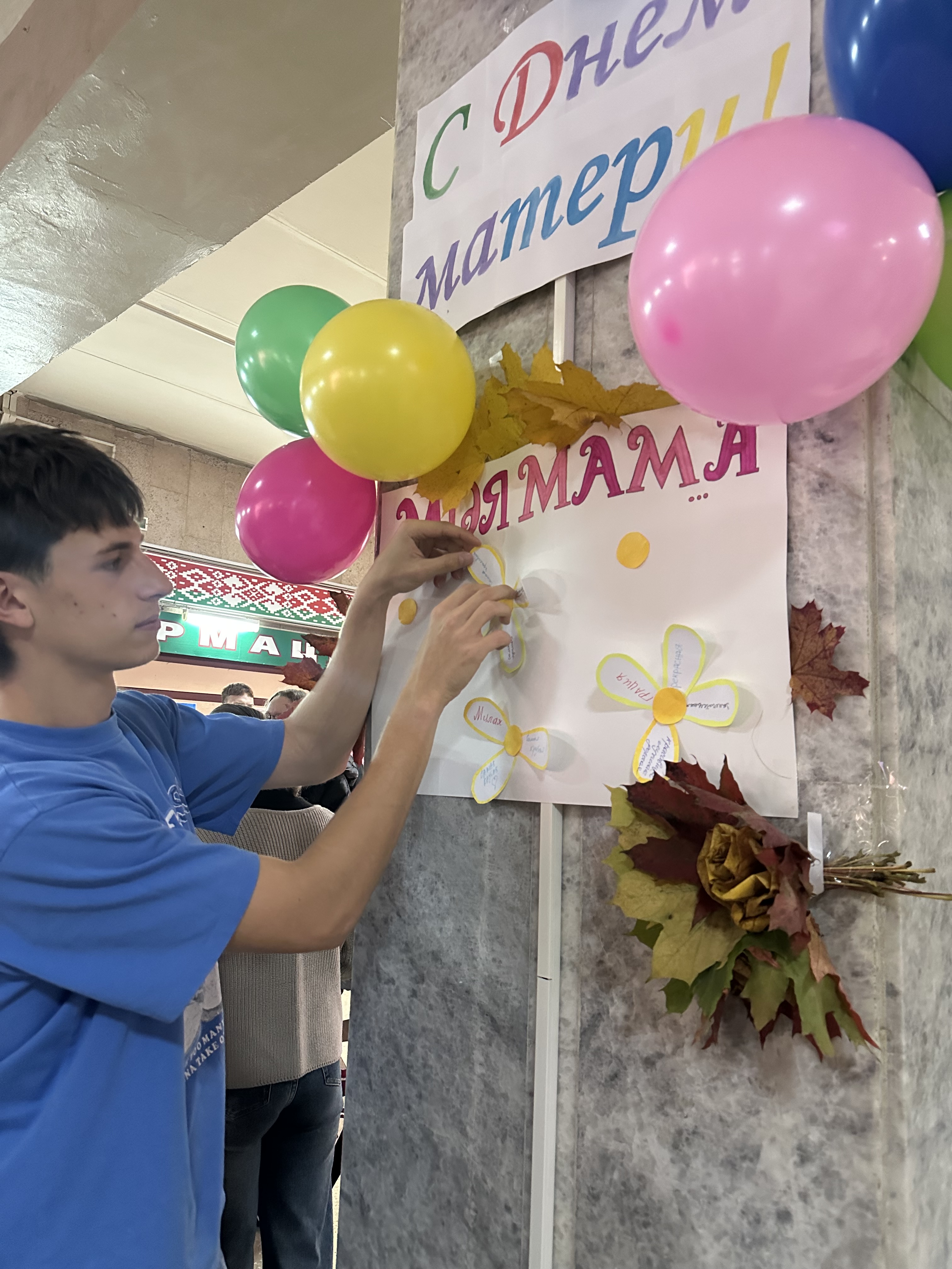 Студенты писали благодарности мамам на специальных листочках, создавая атмосферу искренности и душевной теплоты. Каждое слово стало маленьким, но ценным подарком.
